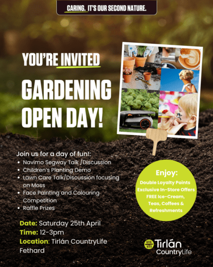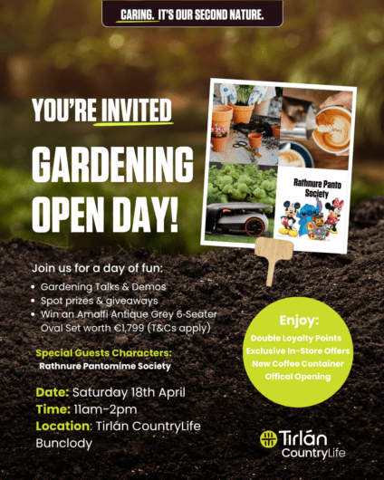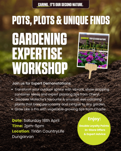 Join us in Tirlán CountryLife Dungarvan for a day of expert gardening talks, amazing demos, and great in-store offers as we kickstart the gardening season.